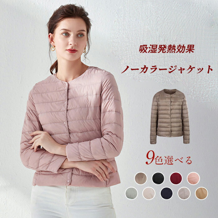 ダウンジャケット インナーダウン レディース ショート 薄手 ノーカラージャケット 大きいサイズ 撥水 発熱吸湿無地 シンプル 秋冬 アウター コンパクト ダウンコート あったか 暖か 軽い