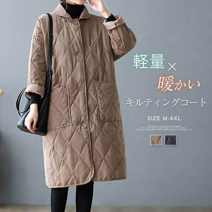 キルティングコート レディース 秋冬 コート アウター ロングコート ブルゾン 中綿ジャンパー キルティング 防寒 ジャケット 中綿コート 防寒コート カジュアル 軽い ゆったり 暖かい 黒 冬 無地