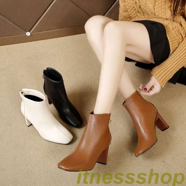 入学式 卒業式 袴 ブーツ ハロウィン ショートブーツ レディース ヒール7cm ハイヒール 痛くない ブーティ 幅広 歩きやすい スクエアトゥ チャンキーヒール レディース靴 黒 履 美脚