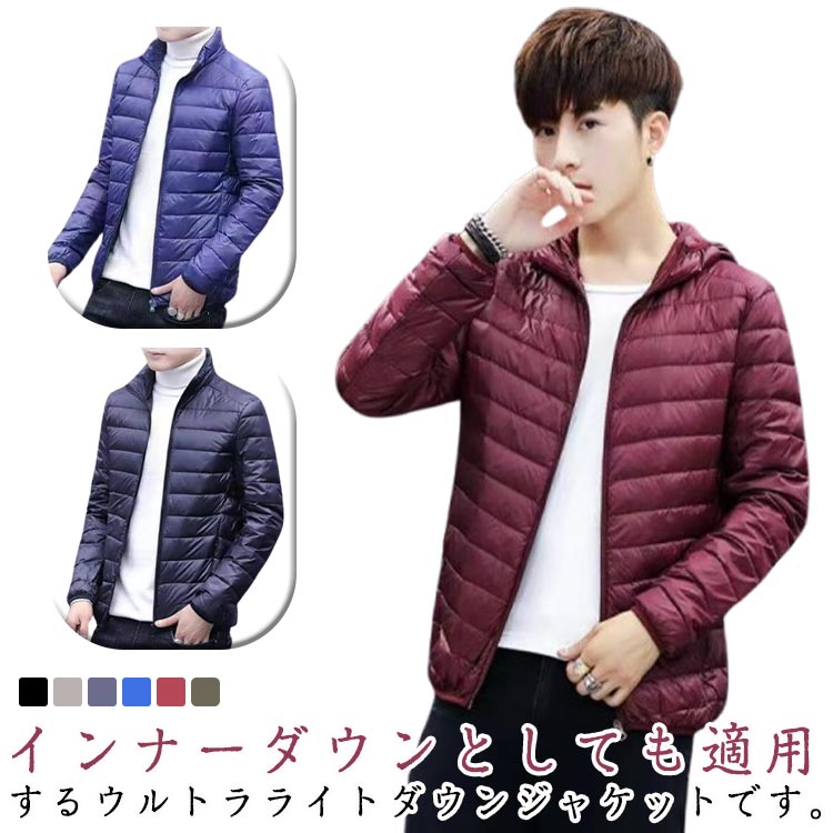 メンズ ダウンジャケット ウルトラライト ダウン ジャケット 中綿入り 中綿ジャケット 無地 軽量 暖かい 防寒 秋冬