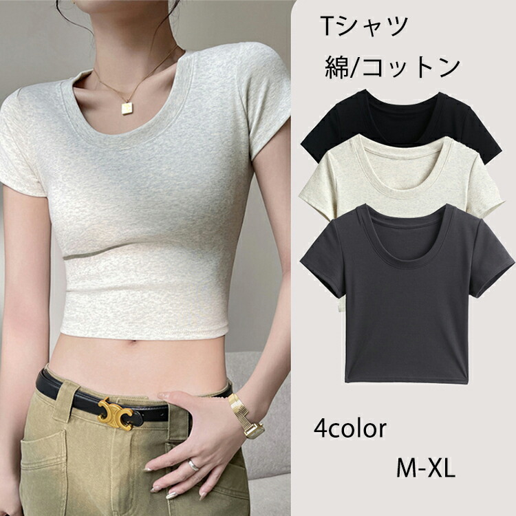 Tシャツ レディース 半袖 夏 秋 春 Uネック 綿 コットン ミニ丈 ショート丈 無地 ゆったり カジュアル 大きいサイズ おしゃれ シンプル ゆるっと きれいめ 汗染み防止 トップス カッ 着回し