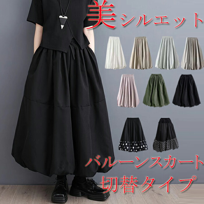 バルーンスカート レディース 秋 冬 きれいめ ロングスカート マキシ丈 スカート Aラインスカート フレアスカート ボトムス 無地 Aライン フレア ウエストゴム 体型カバー 裏地あり ハイウエスト