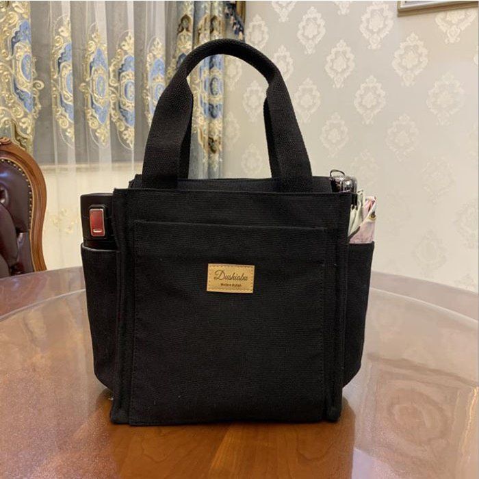 ミニトートバッグ レディース キャンバス マザーズバッグ お弁当袋 ポッシェ ポケット付き かわいい シンプル 無地 母の日 プレゼント おしゃれ