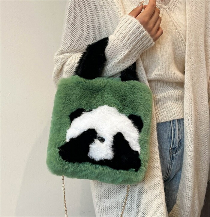 エコファーバッグ パンダバッグファーバッグレディース エコファー ミニバッグ ボア ハンドバッグ バッグ ふわふわ 軽量 バック もこもこ ファッション ファー カバンかばん 鞄 冬 秋冬 斜め 秋