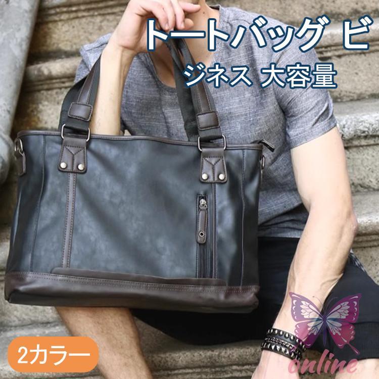 トートバッグ ビジネスバッグ メンズ レディース 大容量 防水 自立 大きめ PUレザー A4 PC収納 ファスナー付き 就活 通学 出張 旅行 通勤