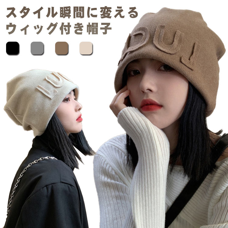 髪付き帽子 ウィッグ付き帽子 ニット帽子 ニットキャップ ニット帽 毛付き帽子
