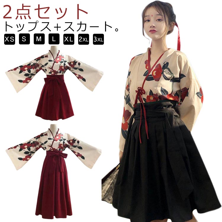 ハロウィン 仮装 イベント コスプレ 袴 コスチューム 花柄 レディース 2点セット トップス スカート