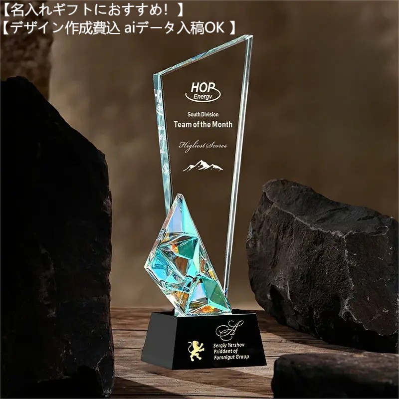 トロフィー クリスタル シンプル ガラス 名入れ 記念品 レーザー加工費込 クリスタル楯 表彰楯 表彰状