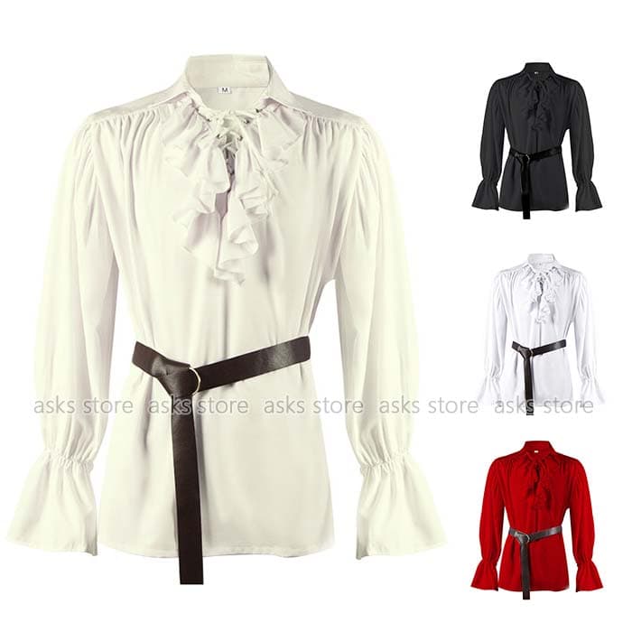 ハロウイン シャツ メンズ 中世 ルネッサンス 詩人 襟元フリル ルネサンス ヨーロッパ 男性用 ブラウス 欧米風 ゴシック ヴィクトリア時期 トップス ベルト付き カップル コスプレ 長袖
