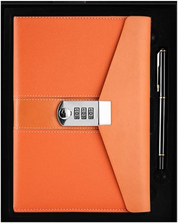 鍵つきノート おしゃれ 日記帳 オレンジ 鍵付き ダイヤルロック 手帳 ロックパスワード 鍵つき日記帳 A5 A5*300 軽量 ノート かわいい 学生 メモ帳 ペンホルダー付き ジャーナル