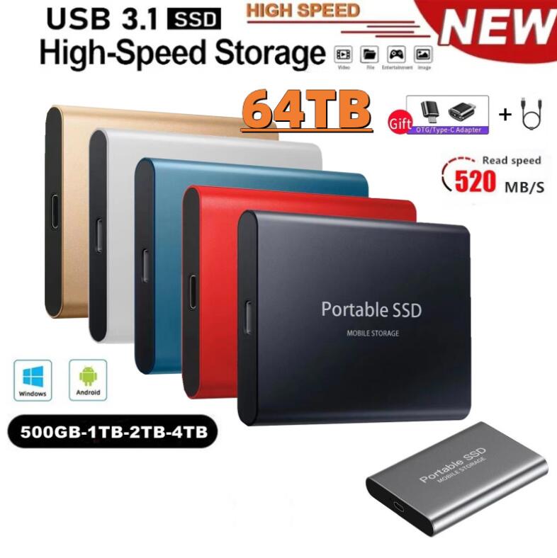 SSD 1TB 外付 ポータブルSSD 外付けハードディス USB-A USB-C両対応 500GB 超薄型ポータブル ハードディスク 2TB USB3.1 対応 スマホ互換可 耐衝撃 Type-C