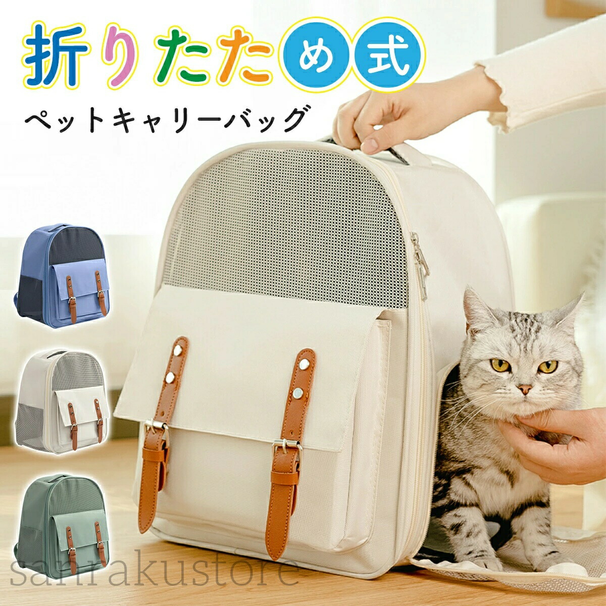 折りたたみ式ペットキャリーバッグ メッシュ リュック型キャリー 多機能ペットバッグ キャリーケース 大容量 通気性抜群 お出かけ 通院 ドライブ 避難 防災グッズ 病院 持ち運び便利