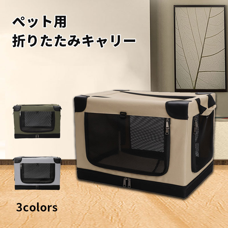 ソフトクレート 折りたたみキャリー ペット用 犬用 猫用 メッシュ窓 通気性 便利 コンパクト 出かけ 旅行 通院 アウトドア ギフト プレゼント アーミーグリーン カー ドライブケージ ペッ グレー