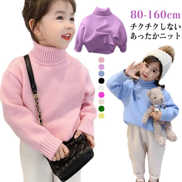 女の子 キッズ こども 裏起毛 セーター ニット タートルネック 無地 ニット トップス 子供服 ゆったり 防寒 新作 秋冬 長袖