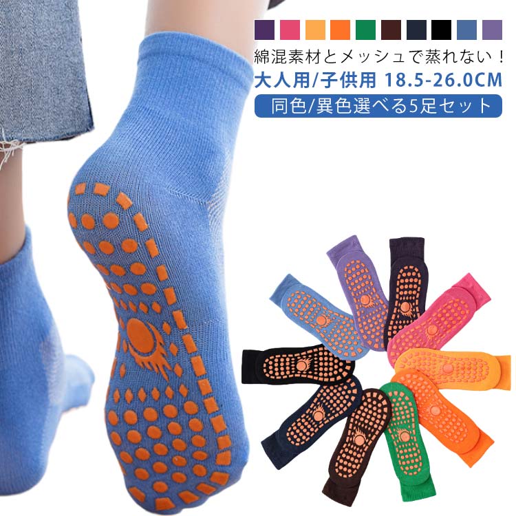 滑り止め付き靴下 滑り止め付き ソックス メッシュソックス クルーソックス セット 5足組 キッズ用 子供用 大人用 新生児 女の子 男の子