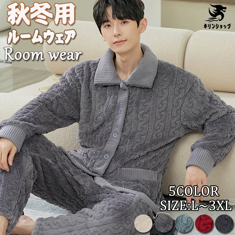 パジャマ メンズ 長袖 冬用 ルームウェア 2点セット 上下セット セットアップ 厚手 暖かい もこもこ ふわふわ パンツ 大きいサイズ ナイトガウン 無地 寝巻き 寝間着 ナ 部屋着