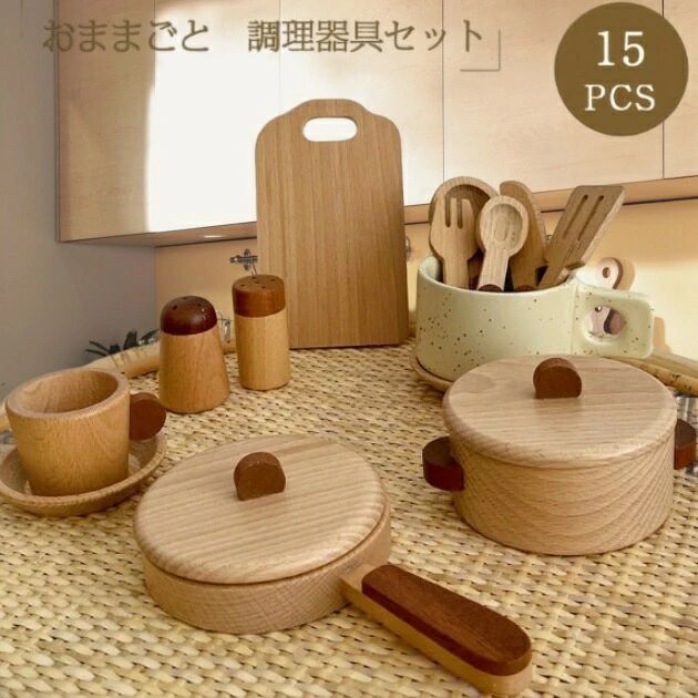 ままごと キッチン 木製 調理器具 食器セット おもちゃ なべ 知育玩具 木のおもちゃ ごっこ遊び 知育おもちゃ 面取り 男の子 女の子 幼児 キッズ 3歳 おうち遊び 室内 誕生日 4歳