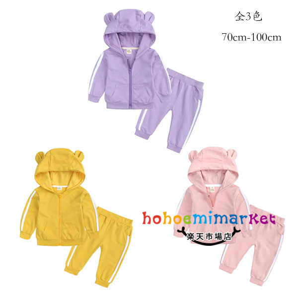 子供服 ベビー服 セットアップ 可愛い 上下セット フード付き 2点セット ユニセックス ジャージ 長袖 長ズボン キッズ スポーツウェア 運動着 男女兼用 女の子 男の子 普段着 70-100