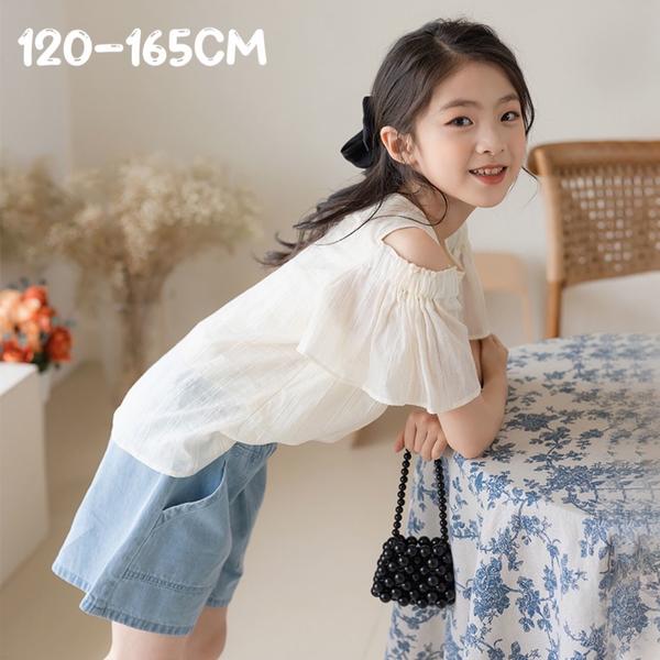 気楽 綿98% 肩だし 子ども服 子供服 120 130 140 150 160 165 韓国 韓国ファッション トップス 夏 夏服 肩あきシャツ 半袖 おしゃれ かわいい 裏生地あり シャツ 無地 キッズ 女の子