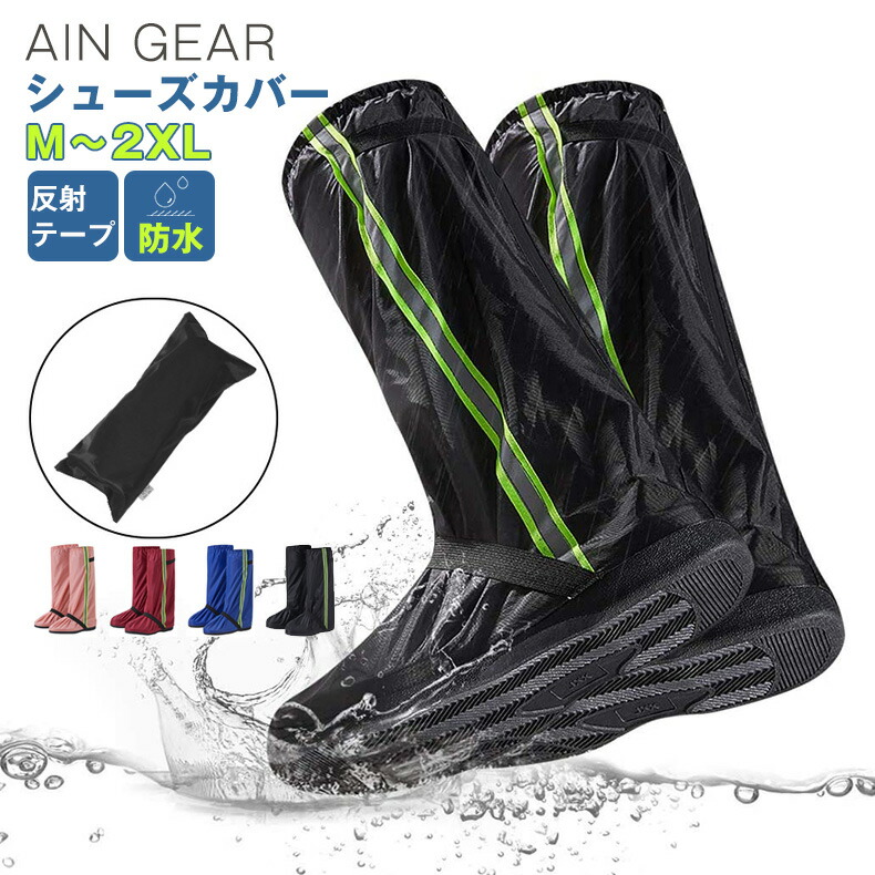 シューズカバー 防水 靴カバー 反射テープ 4サイズ 携帯可 雨 雪 泥除け 梅雨対策 レインカバー 滑り止め 夜間安全 軽量 男女兼用