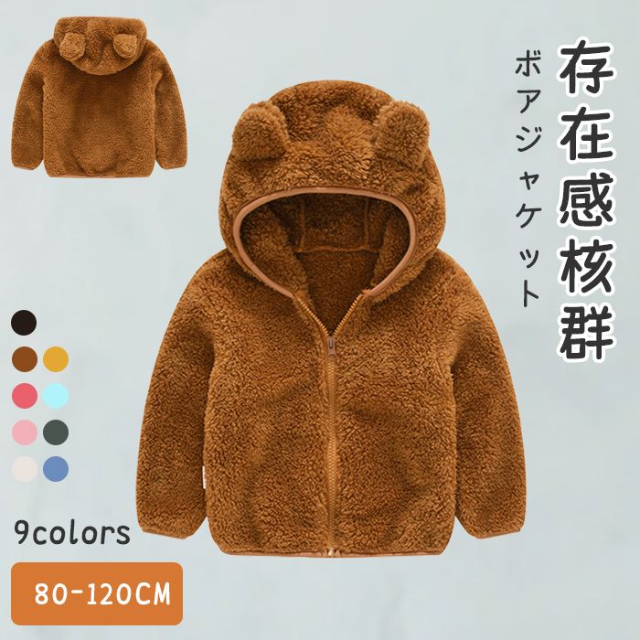 新生活 気楽 フリース ジャケット ボアブルゾン キッズ 長袖 もこもこ ふわふわ 女の子 男の子 子供服 子ども アウター 無地 耳付き 防寒 お揃い