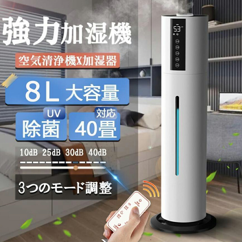 加湿器 大容量 UV除菌&湿度設定 8L イオン発生 空気清浄機 床置き 卓上 超音波 次亜塩素酸水対応 吹出し口360°回転 おしゃれ 加湿 アロマ オフィス タイマー 静音 リモコン 部屋