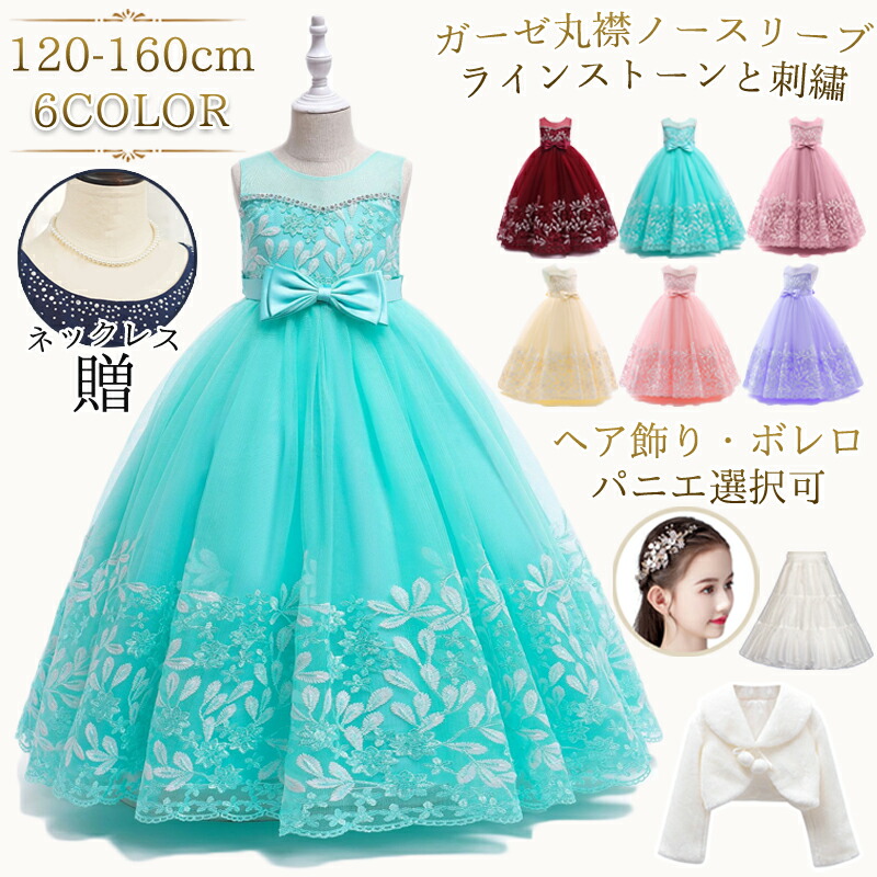 子供ドレス ピアノ発表会 キッズ 女の子 110-160cm チュール フォーマル ワンピース 刺繍 ジュニア ロング 上品 コンクール 蝶結び フラワーガール お姫様 入園式 卒業式 演奏会 誕生日