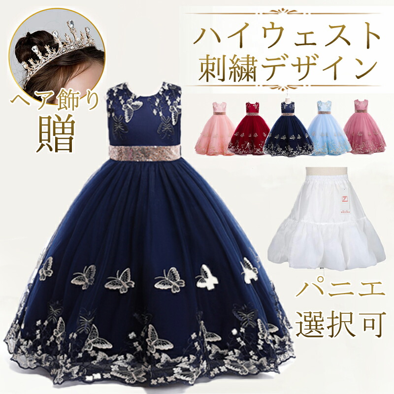 子供ドレス ピアノ発表会 キッズ ヘア飾り パニエ 110-170CM フォーマル パーティー ウエディング フラワーガール ガールズ お姫様 真珠 刺繍 チュール レース 七五三 卒業式 演 誕生日