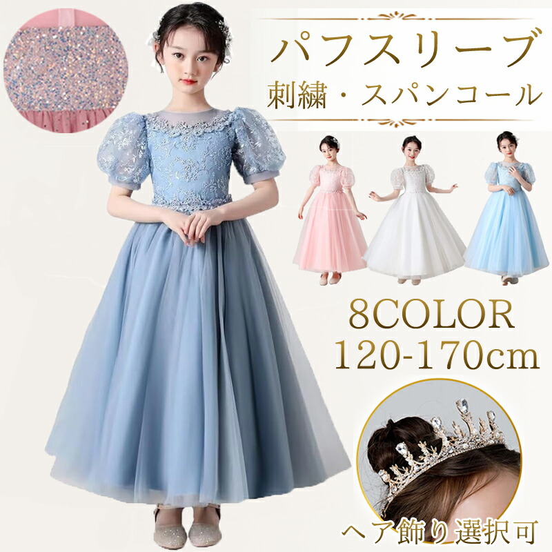 子供ドレス ピアノ発表会 キッズ 120-170CM パフスリーブ 刺繍 花柄 フォーマル 七五三 ワンピース ロング パーティー プリンセス ジュニア 誕生日 入園式 卒業式 演奏会 プレゼ 入学式