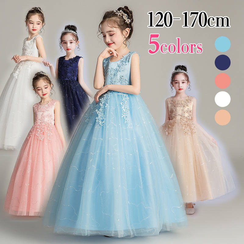 ピアノ発表会 キッズ ロングドレス フォーマル ワンピース120-170CM 刺繍 花柄 子供フォーマルドレス 七五三 ワンピース パーティードレス ウエディングドレス 誕生日 入園 プリンセスドレス