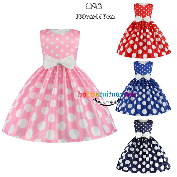 ドレス 水玉柄 蝶結び 発表会 舞台 ピアノ演奏 女の子 ドレス リボン ドット柄 ノースリーブ お祝い 記念日 イベント お呼ばれ 入園式 卒園式 入学式 おしゃれ キッズ ドレス 100-150