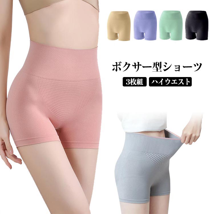 3枚組 ショーツ ハイウエスト ガードル オーバーパンツ ボクサーショーツ スパッツ 下着 引き締め 3D立体裁断 ペチコート ペチパンツ ヒップアップ 肌着