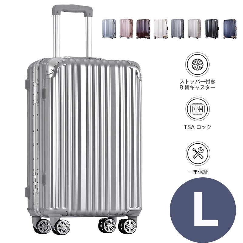 キャリーケース Lサイズ スーツケース usbポート付き アルミ ストッパー付き USBポート カップホルダー フレーム TSAロック搭載 一年 キャリーバッグ