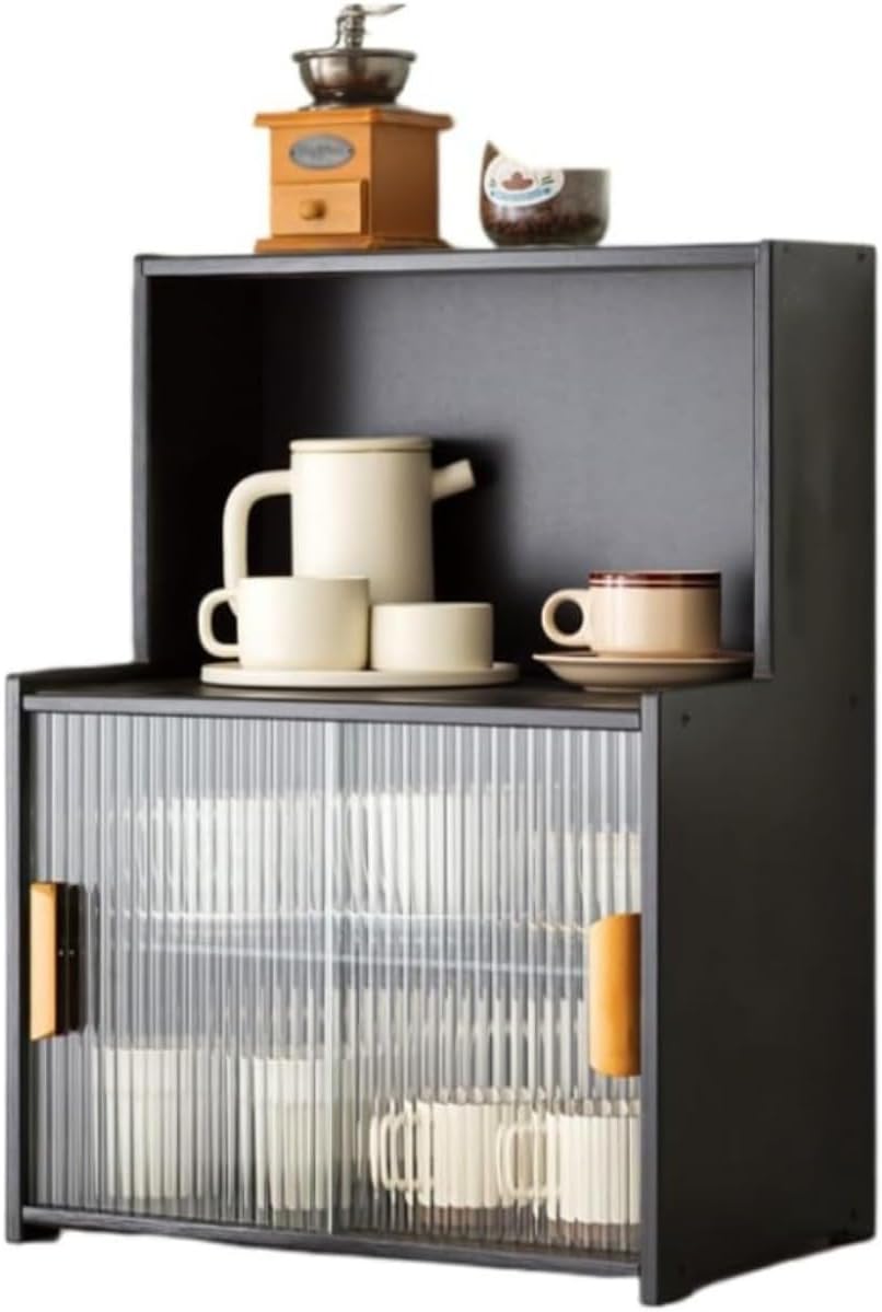 食器棚 防塵 引き戸 可動棚 竹製 一人暮らし 収納棚 キッチン収納 キッチンキャビネット キッチンカウンター 組み立て式 おしゃれ ガラス扉 ミニ スリム 収納便利 台所収納 (ブラック コンパクト