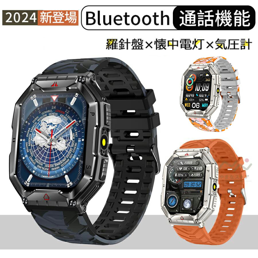 スマートウォッチ 2.1インチHD大画面 IP67防水 軍用規格 通話機能 高度 気圧 羅針盤 アラーム メンズ腕時計 酸素 着信通知 歩数計 40 60代 敬老の日の贈り物 父の日プレゼン 50
