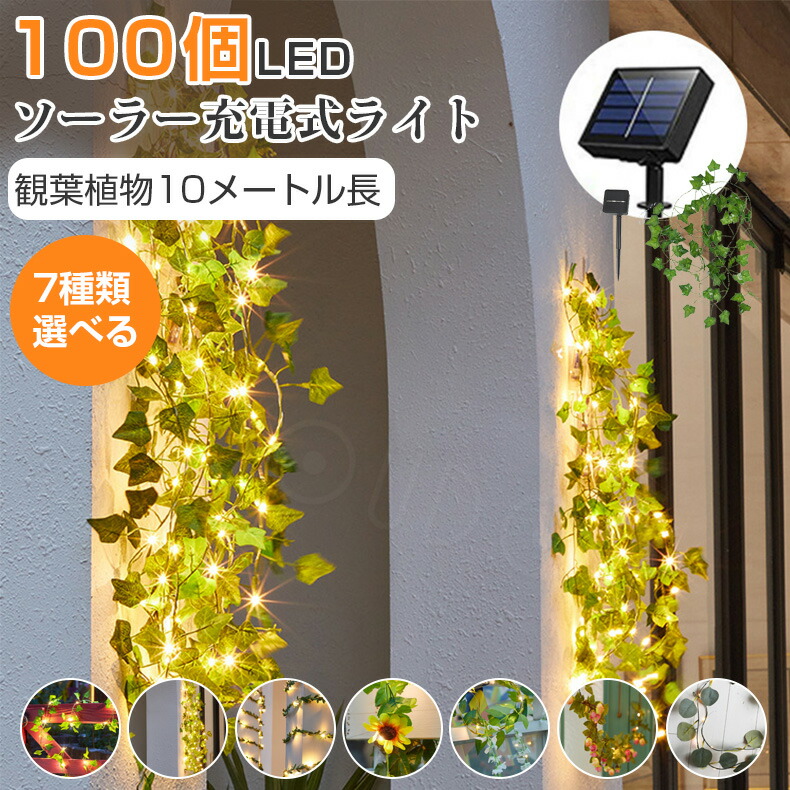 ストリングライト太陽光充電 イルミネーションライト 観葉植物 造花グリーン インテリア 藤 緑 部屋装飾 パーティー電飾 庭 結婚式 誕生日 新年飾りライト キャンプ用 電球色 10