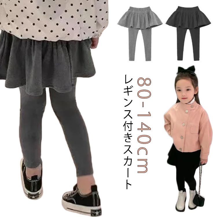 無地 韓国子供服 裏起毛 子ども服 スカート 女の子 レギンス付き 10分丈 ボトムス レギンス スカート付き 春 秋 冬 スカッツ スカートレギンス 発表会 フォ ウエストゴム