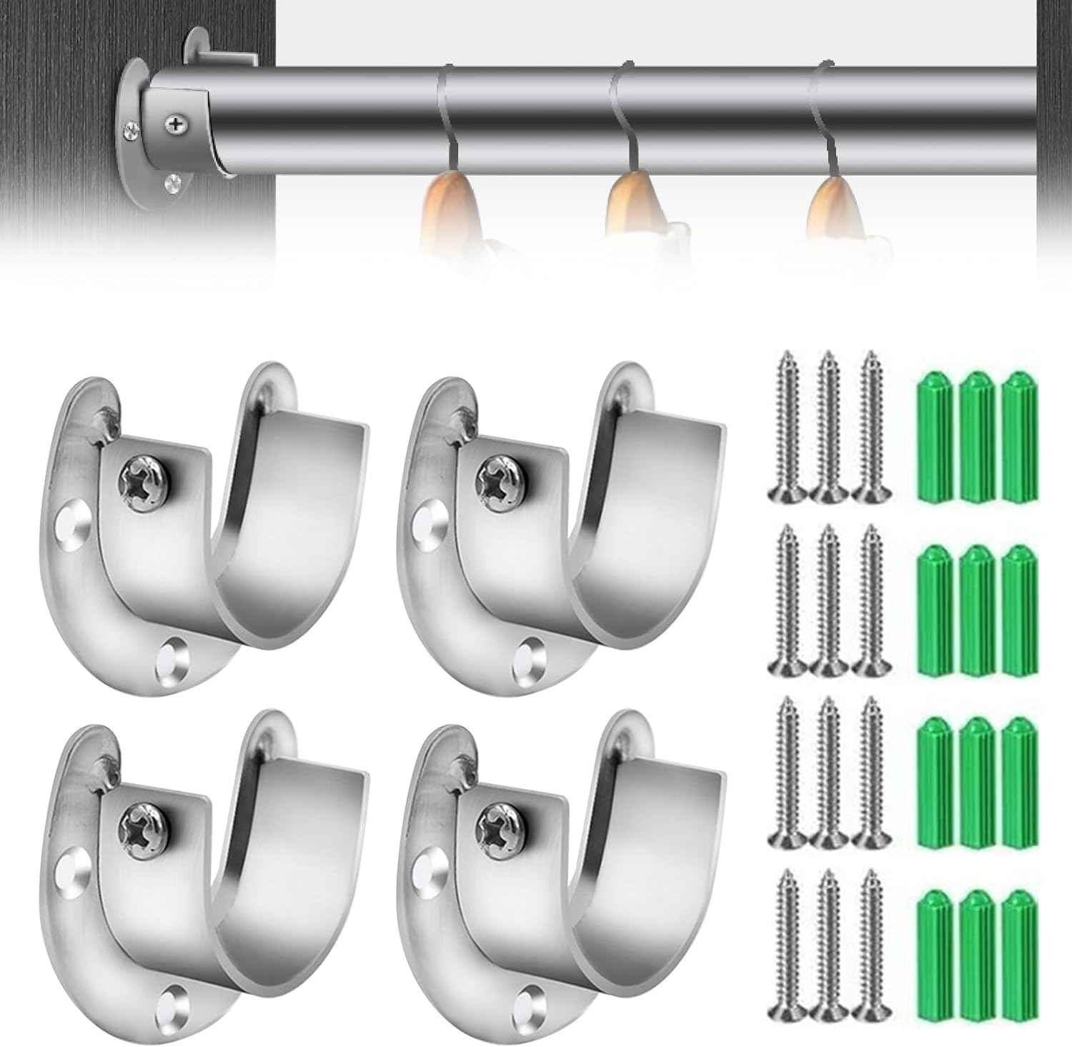 クローゼットロッドサポート 金具 U字型 クローゼットポールソケット フランジロッドホルダー フランジソケット ステンレス鋼 固定 ハンガーポール ネジ付き フ シャワーロッド