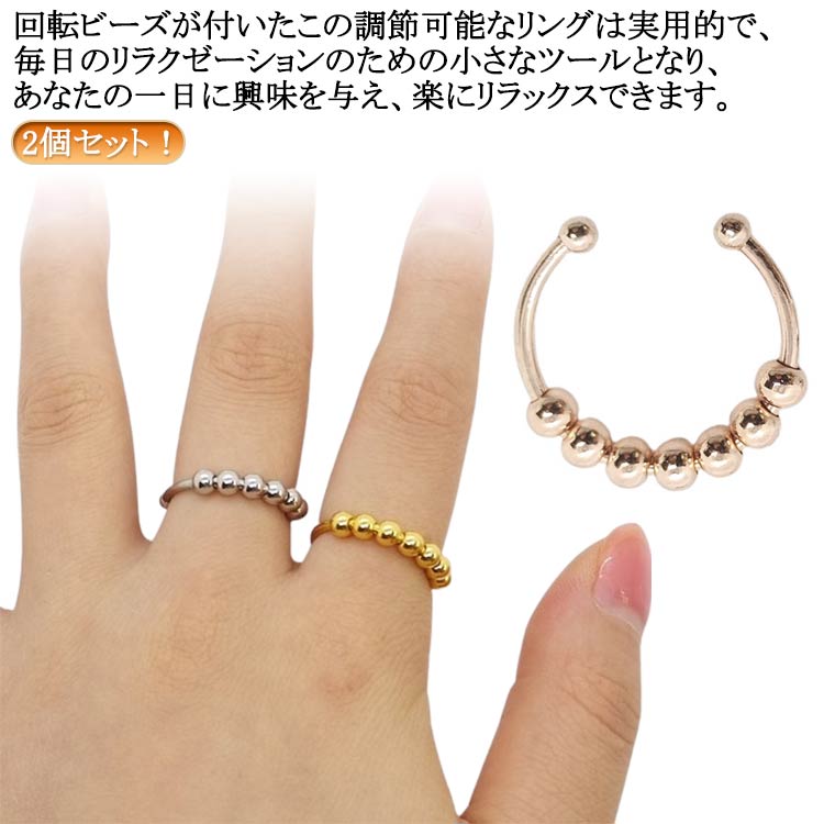 送料無料 指輪 リング 回転可能 2個セット 女性用スピナーリング ストレス解消リング ジュエリー回転可能なビーズ付き 調節可能 レディース メンズ 女性 男性 心配リング 面白い