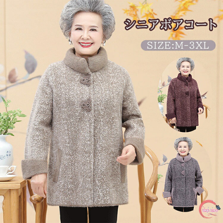 レディース ファーコート 高齢者 コート シニア 婦人服 秋冬 ボアブルゾン 大きいサイズ 裏起毛 体型カバー 防寒 おばあちゃん ジャケット 裏ボア 冬コート お年寄り 暖かい アウター