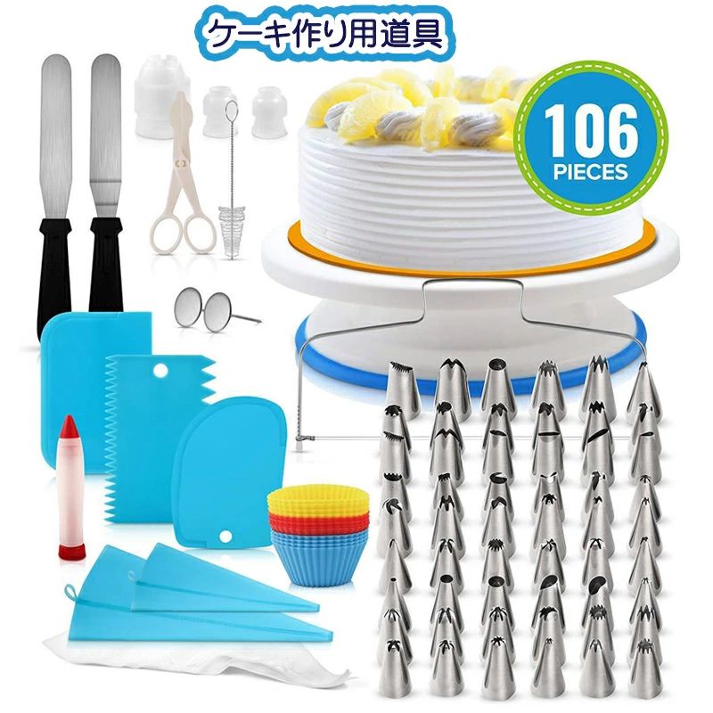 ケーキ回転台 ケーキ装飾台 絞り口金セット 絞り袋 絞り口金 ケーキ作り用 ターンテーブル ベーキング ツール 106pcs 滑り止め