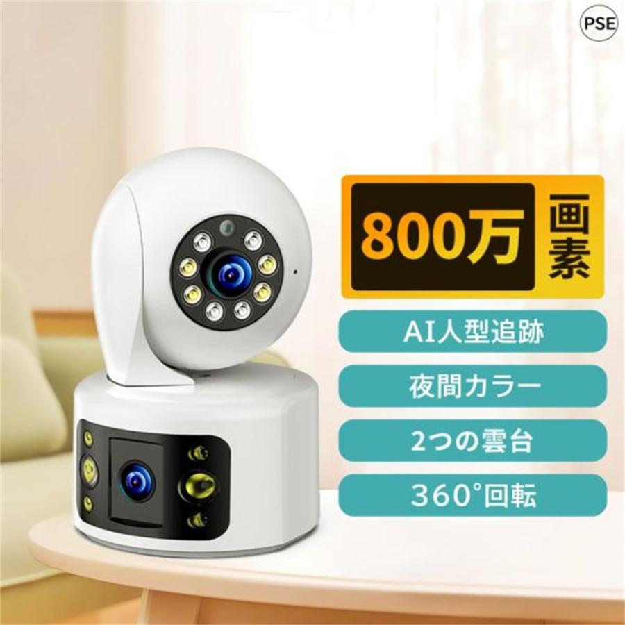 見守りカメラ 防犯カメラ 屋外 800万画素 家庭用 wifi 人体検知 自動追跡 パンチルト デュアル IP66 屋内 屋外工事不要 遠隔監視 夜間カラー 録画 カメラ 高画質