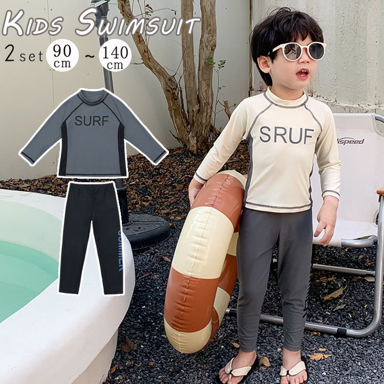 キッズ 水着セット 男の子 セットセパレート ベビー 水着 ラッシュガード 長袖 90 100 110 120 130 オシャレ 日焼け止め 黒 グレー ベージュ 旅行 ビーチ 水遊び 練習着