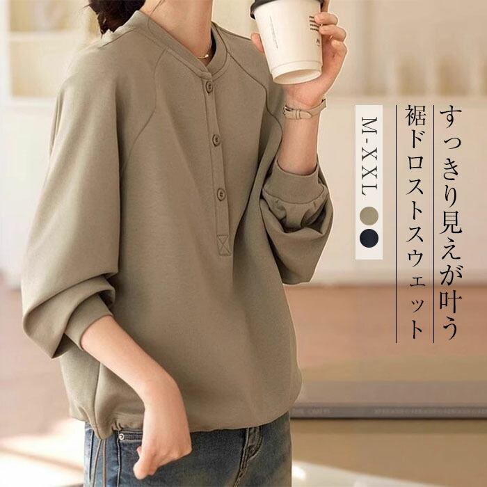 トレーナー レディース クールネック 長袖 スウェット 定番 春 秋 冬 秋冬 体型カバー プルオーバー トップス リラックス シンプル 着痩せ ドロップショルダー 通勤オフィス 大人