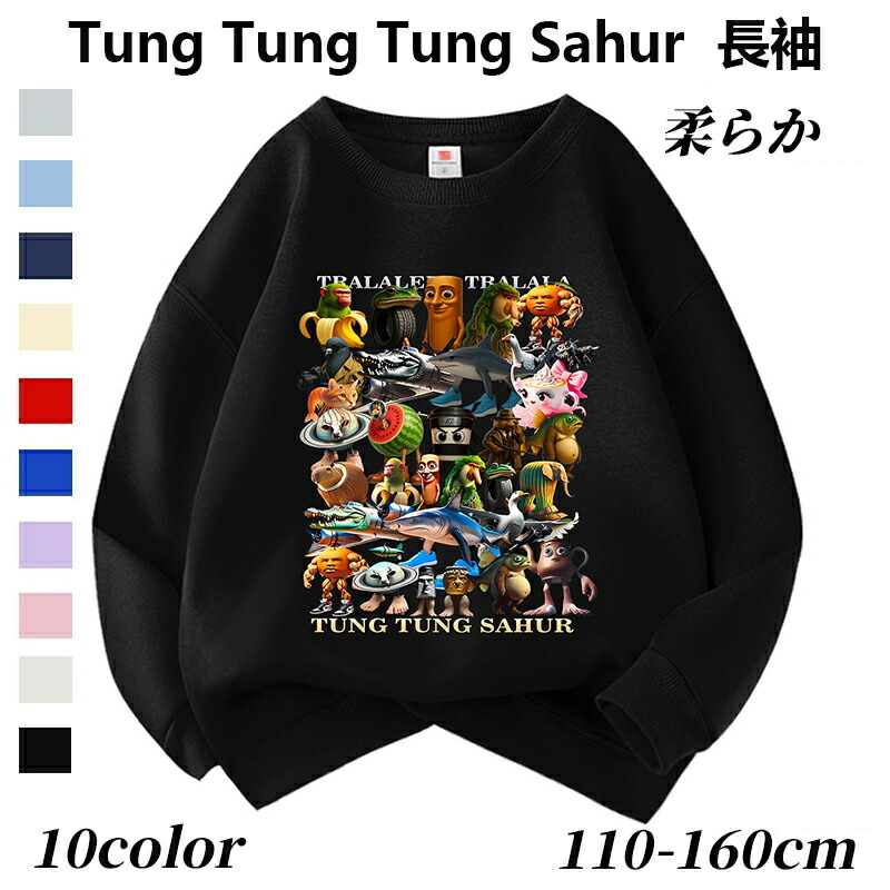トゥントゥントゥンサフール Tung Sahur Tralalero Tralala トララレロ トラララ Italian Brainrot 綿 スウェットキッズ 長袖スウ 子供服