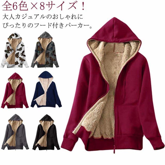 ボア 無地 レディース 裏起毛パーカー もこもこ 大きサイズ アウター ジップアップパーカー 秋冬 パーカー ブルゾン フード付き 暖かい ふわふわ ゆったり カジュアル 大人 裏ボア