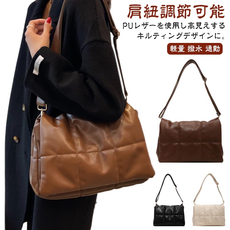 ショルダーバッグ レディース ワンショルダー 斜め掛け フェイクレザー バック 鞄 カバン キルティング かばん 肩掛け 斜めがけ 軽量 撥水 通勤 オフィス シンプル ワンショルダーバッグ 大 上品
