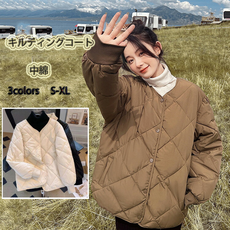 ジャケット キルティング レディース 秋冬 可愛い あたたかい カジュアル ロング丈 マキシ リラックス 白 黒 ホワイト ブラック ギフト プレゼント