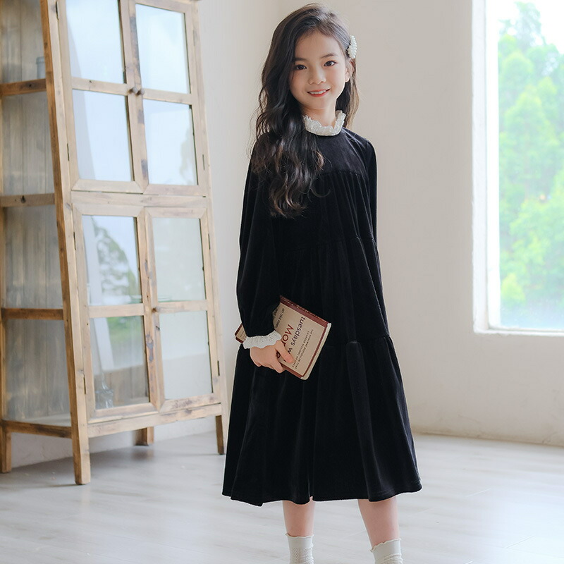 キッズ ワンピース 秋 冬 長袖 黒 子供服 女の子 ワンピース おしゃれ 韓国子供服 ワンピース 子供ワンピース 幼稚園 小学生 中学生 高校生 140 150 160