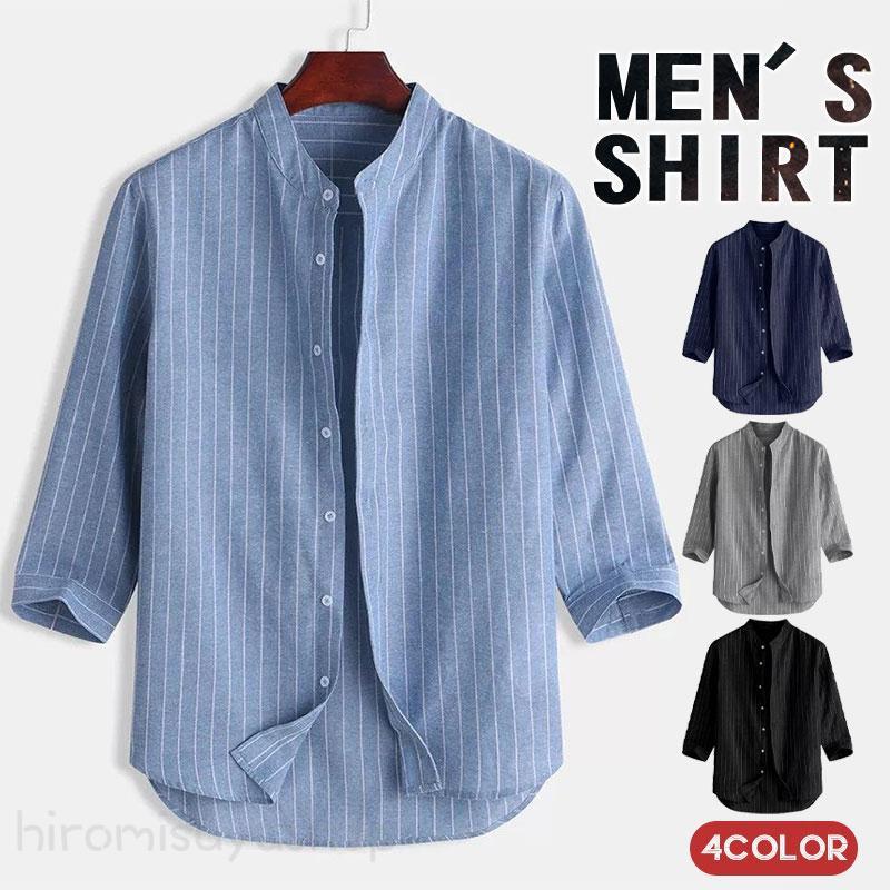 七分袖シャツ シャツ メンズ 半袖シャツ カジュアル ボーダー柄 立ち襟 シンプル 無地 ビジネス 羽織 開襟シャツ 夏服 通勤 通学 おしゃれ